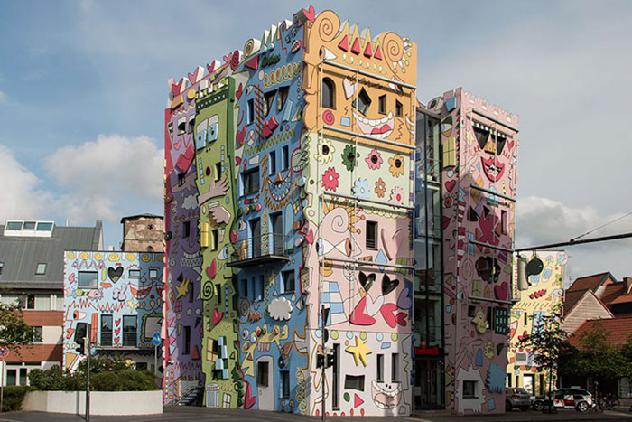 Setiap seniman bertugas membuat sesuatu yang membosankan menjadi sesuatu hal yang baru dan menarik. Begitulah yang dilakukan oleh James Rizzi, seorang seniman pop bergaya seni psychedelic. Di Jerman, ia memperlakukan bangunan-bangunan yang membosankan menjadi seperti sebuah kanvas. Dia menyulap dinding-dinding bangunan itu menjadi lukisan penuh warna yang sunggu menggoda setiap mata yang memandang! (h/t: fubiz)